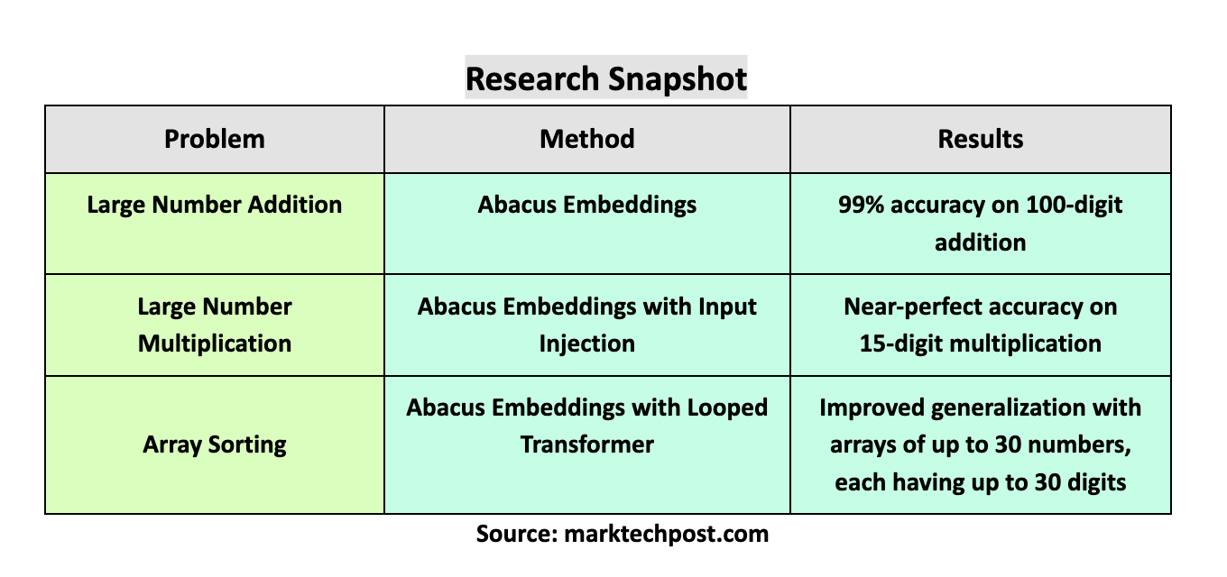 The post Enhancing Transformer Models with Abacus Embeddings for Superior Arithmetic and Algorithmic Reasoning Performance appeared first on MarkTechPost.