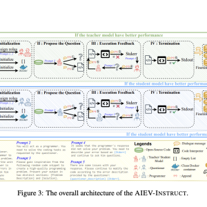 AIEV-INSTRUCT operates in two stages: the Teaching Stage and the Self-learning Stage. Initially, it uses a proprietary model to generate and validate code instructions. In the Teaching Stage, GPT-4 Turbo serves as the teacher model, guiding the generation of high-quality code snippets and ensuring their correctness through unit tests. The process involves multiple rounds of interaction between the questioner and programmer agents, with execution feedback used to refine the generated code continuously. Once the student model surpasses the teacher model in accuracy, it transitions to a self-learning stage where the student model autonomously generates and validates code. In the Self-learning Stage, the student model itself acts as both the questioner and programmer, iteratively improving its performance through self-generated dialogues and execution feedback. This process ensures the generated code’s accuracy and reduces dependency on expensive closed-source models.
