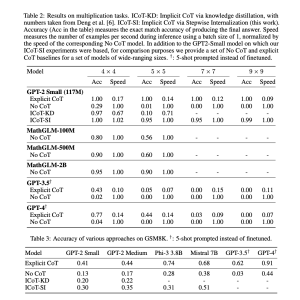 Existing work includes explicit chain-of-thought (CoT) reasoning, which generates intermediate reasoning steps to improve accuracy but demands substantial computational resources. Implicit CoT via knowledge distillation (ICoT-KD) trains models using hidden states for reasoning without explicit steps. Methods like MathGLM solve multi-digit arithmetic tasks without intermediate steps, achieving accuracy with large models. Another approach, Searchformer, trains transformers to perform searches with fewer steps. These methods aim to enhance efficiency and accuracy in natural language processing tasks.