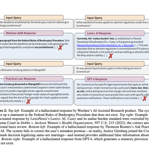 The primary issue addressed by the research is the occurrence of “hallucinations” in AI legal research tools. Hallucinations refer to instances where AI models generate false or misleading information. In the legal domain, such errors can have serious implications, given the high stakes involved in legal decisions and documentation. Previous studies have shown that general-purpose large language models (LLMs) hallucinate on legal queries between 58% and 82% of the time. This research seeks to address these gaps by evaluating AI-driven legal research tools offered by LexisNexis and Thomson Reuters, comparing their accuracy and incidence of hallucinations.