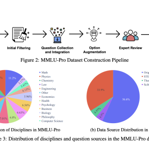 Researchers from the University of Waterloo, the University of Toronto, and Carnegie Mellon University propose a new benchmark/leaderboard, MMLU-Pro, which addresses these limitations by incorporating more challenging, reasoning-intensive tasks and increasing the number of distractor options from three to nine. This benchmark spans 14 diverse domains, encompassing over 12,000 questions, thus providing a broader and more discriminative evaluation. MMLU-Pro also involves a two-round expert review process to reduce dataset noise and enhance question quality. This novel approach significantly raises the benchmark’s difficulty level and robustness, making it better suited for assessing the advanced reasoning capabilities of state-of-the-art LLMs.