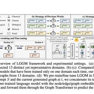 Researchers from Vanderbilt University, the University of Michigan, Adobe Research, and Intel Labs have introduced LARGE GRAPH GENERATIVE MODEL (LGGM), a new class of graph generative model that is trained on a large corpus of graphs from 13 distinct domains. Pre-trained LGGM outperforms other graph generative models in zero-shot generative capability and can be easily fine-tuned with graphs from specific fields, showing better performance than those directly trained from scratch. LGGM can generate graphs given text prompts, such as the description of the network name and domain, and network statistics.