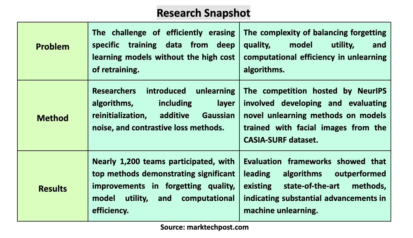The post Innovative Approaches in Machine Unlearning: Insights and Breakthroughs from the first NeurIPS Unlearning Competition on Efficient Data Erasure appeared first on MarkTechPost.