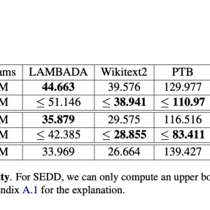 SEDD utilizes a transformer backbone similar to GPT-2, trained on the OpenWebText dataset. Comparative evaluations show that SEDD matches or exceeds GPT-2’s likelihood on various test datasets, including LAMBADA, Wikitext2, PTB, WikiText103, and 1BW. SEDD’s sampling process offers flexibility, allowing for fewer steps than the sequence length, with 32 sampling steps achieving better perplexity than GPT-2 without annealing for 1024-token sequences. The sampling algorithm is straightforward, making it accessible for further research. Unlike autoregressive models, SEDD’s non-causal token generation and flexible forward process definition open possibilities for tasks requiring reasoning over long sequences. The familiar architecture allows for the potential integration of alternative sequence models, such as state-space models, presenting opportunities for further architectural exploration and optimization.