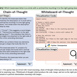 Researchers from Columbia University have proposed Whiteboard-of-Thought (WoT) prompting, a simple approach to enhance the visual reasoning abilities of MLLMs (multimodal large language models) across modalities. WoT prompting provides MLLMs a metaphorical ‘whiteboard’ where they can draw out reasoning steps as images and then return these images to the model for further processing. This method works without showing examples or special modules, using the models’ existing ability to create code with libraries like Matplotlib and Turtle. This simple method achieves state-of-the-art results on four difficult natural language tasks that require visual and spatial reasoning.