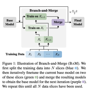 Researchers from INSAIT, LogicStar.ai, ETH Zurich, the University of Chicago, and Together AI  introduced a novel approach called Branch-and-Merge (BAM). This method iteratively merges multiple models, each fine-tuned on different subsets of training data, to achieve lower magnitude but higher quality weight changes. By combining these models, BAM reduces forgetting while maintaining learning efficiency. The BAM method splits the training data into several slices and fine-tunes the base model on these slices in parallel. The resulting models are merged to form a new base model for the next iteration. This iterative process minimizes the total weight change, reducing the risk of catastrophic forgetting. Additionally, by leveraging multiple training slices, BAM ensures the retention of essential skills from the base language.