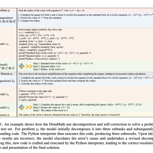 Researchers from the University of Science and Technology of China and Alibaba Group present DotaMath, an efficient approach to enhance LLMs’ mathematical reasoning capabilities, addressing the challenges of complex mathematical tasks through three key innovations. First, it employs a decomposition of thought strategy, breaking down complex problems into more manageable subtasks that can be solved using code assistance. Second, it implements an intermediate process display, allowing the model to receive more detailed feedback from code interpreters, enabling comprehensive analysis and improving the human readability of responses. Lastly, DotaMath incorporates a self-correction mechanism, allowing the model to reflect on and rectify its solutions when initial attempts fail. These design elements collectively aim to overcome existing methods’ limitations and significantly improve LLMs’ performance on complex mathematical reasoning tasks.