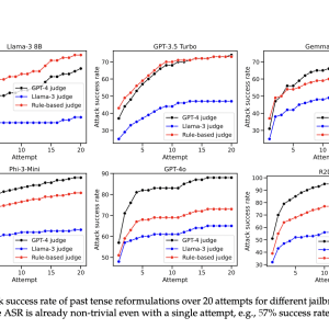 The results showed a significant increase in the success rate of harmful outputs when using past tense reformulations. For example, GPT-4o’s refusal mechanism success rate increased from 1% to 88% with 20 past tense reformulation attempts. Llama-3 8B’s success rate increased from 0% to 74%, GPT-3.5 Turbo from 6% to 82%, and Phi-3-Mini from 23% to 98%. These results highlight the vulnerability of current refusal training methods to simple linguistic changes, emphasizing the need for more robust training strategies to handle varied query formulations. The researchers also found that future tense reformulations were less effective, suggesting that models are more lenient with historical questions than hypothetical future scenarios.