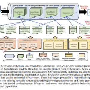 The Data-Juicer Sandbox employs a “Probe-Analyze-Refine” workflow, allowing researchers to test and refine different data processing operators (OPs) and model configurations systematically. This method involves creating equal-size data pools, each processed uniquely by a single OP. Models are trained on these data pools, enabling in-depth analysis of OP effectiveness and its correlation with model performance across various quantitative and qualitative indicators. This systematic approach improves both data quality and model performance, providing valuable insights into the complex interplay between data preprocessing and model behavior.