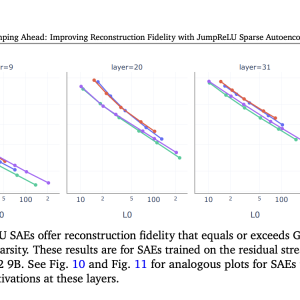 The researchers provide an effective way to estimate the gradient of the predicted loss using straight-through estimators, which enables JumpReLU SAEs to be trained using standard gradient-based approaches. Using activations from the attention output, MLP output, and the Gemma 2 9B residual stream over many layers, they assess JumpReLU, Gated, and TopK SAEs. They discover that, regardless of the sparsity level, JumpReLU SAEs reliably outperform Gated SAEs regarding reconstruction faithfulness.
