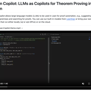Introducing Lean Copilot: a new AI tool designed to address these limitations by integrating large language models (LLMs) with Lean. It aims to automate parts of the proof construction process by suggesting tactics, searching for proofs, and selecting relevant premises. Users can use built-in models or bring their own models to run either locally or on the cloud. Lean Copilot can generate tactic suggestions, combine tactics to find proofs and select premises from a fixed database. This makes the proof construction process more efficient and less reliant on manual input.