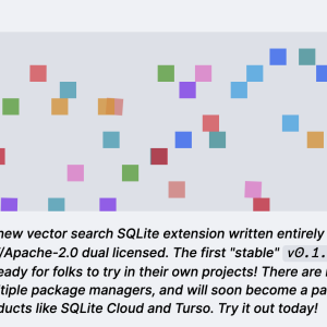 Alex Garcia announced the much-anticipated release of sqlite-vec v0.1.0. This new SQLite extension, written entirely in C, introduces a powerful vector search capability to the SQLite database system. Released under the MIT/Apache-2.0 dual license, sqlite-vec aims to be a versatile and accessible tool for developers across various platforms and environments.