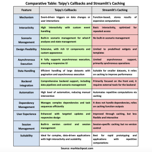 Comparative Table: Taipy’s Callbacks and Streamlit’s Caching