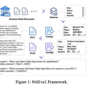 Researchers from Tsinghua University, Beijing Normal University, University of Chinese Academy of Sciences, and Northeastern University introduced the RAGEval framework to address these challenges. This framework automatically generates evaluation datasets tailored to specific scenarios in various vertical domains. The process begins by summarizing a schema from seed documents, generating diverse documents and constructing question-answering pairs based on these configurations. The framework then evaluates the model responses using novel metrics focusing on factual accuracy.