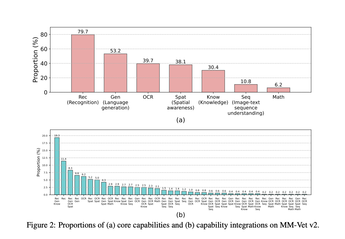 In recent research, MM-Vet has established itself as one of the most popular benchmarks for evaluating LLMs, particularly through its use of open-ended vision-language questions designed to assess integrated capabilities. Six fundamental vision-language (VL) skills are particularly assessed by this benchmark: numeracy, recognition, knowledge, spatial awareness, language creation, and optical character recognition (OCR). Many real-world applications depend on the ability to comprehend and absorb written and visual information cohesively, which is made possible by these skills.