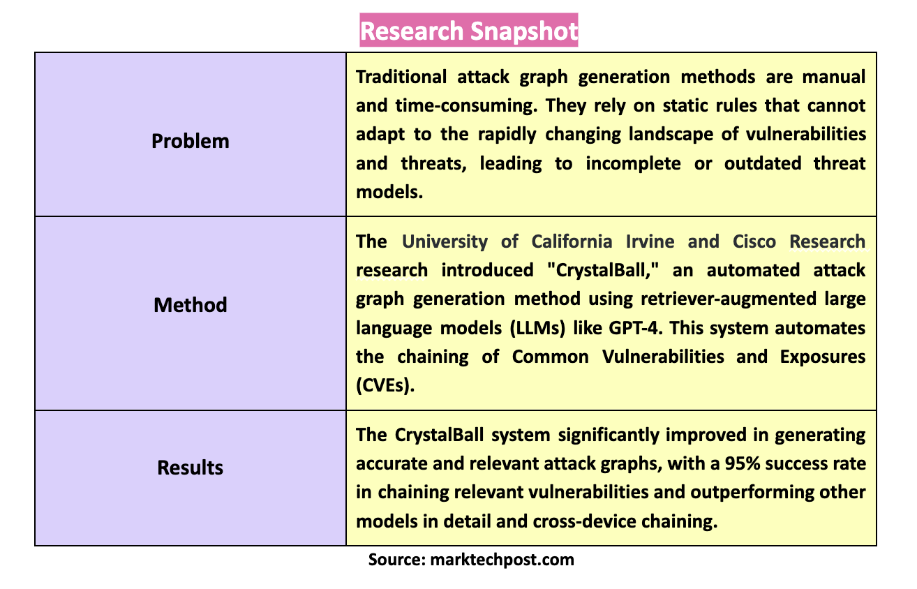 The post Researchers from UCI and Cisco Propose ‘CrystalBall’: A Novel AI Method for Automated Attack Graph Generation Using Retriever-Augmented Large Language Models appeared first on MarkTechPost.
