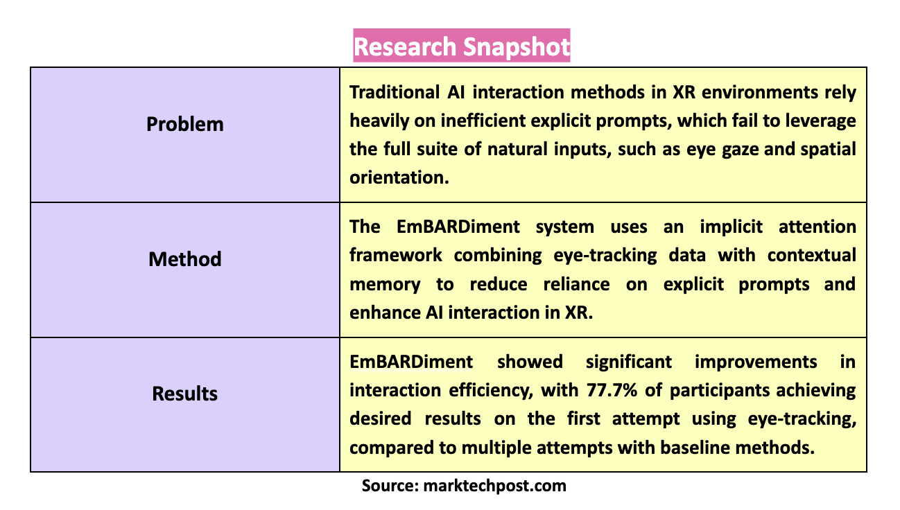 The post EmBARDiment: An Implicit Attention Framework that Enhances AI Interaction Efficiency in Extended Reality Through Eye-Tracking and Contextual Memory Integration appeared first on MarkTechPost.