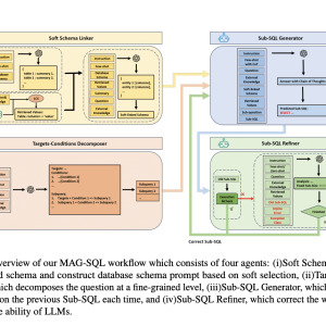A research team from South China University of Technology and Tsinghua University introduced MAG-SQL, a novel multi-agent generative approach designed to enhance the Text-to-SQL process. This innovative method combines multiple agents working collaboratively to improve the accuracy of SQL generation. The MAG-SQL framework includes a Soft Schema Linker, Targets-Conditions Decomposer, Sub-SQL Generator, and Sub-SQL Refiner, each crucial in refining the SQL queries generated from natural language inputs. By incorporating soft schema linking and iterative sub-SQL refinement, the researchers have created a method that significantly outperforms previous approaches.