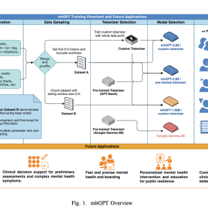 Children’s National Hospital and George Washington University researchers introduced mhGPT, a lightweight generative model trained on mental health-related social media and PubMed articles. Designed for low-resource environments, mhGPT, with only 1.98 billion parameters, outperformed larger models like MentaLLaMA and Gemma despite using just 5% of the dataset. The model benefits from integrating diverse mental health data and a custom tokenizer, showing that smaller, expert knowledge-infused models can match or exceed the performance of state-of-the-art models in mental health tasks, even with limited computational resources.