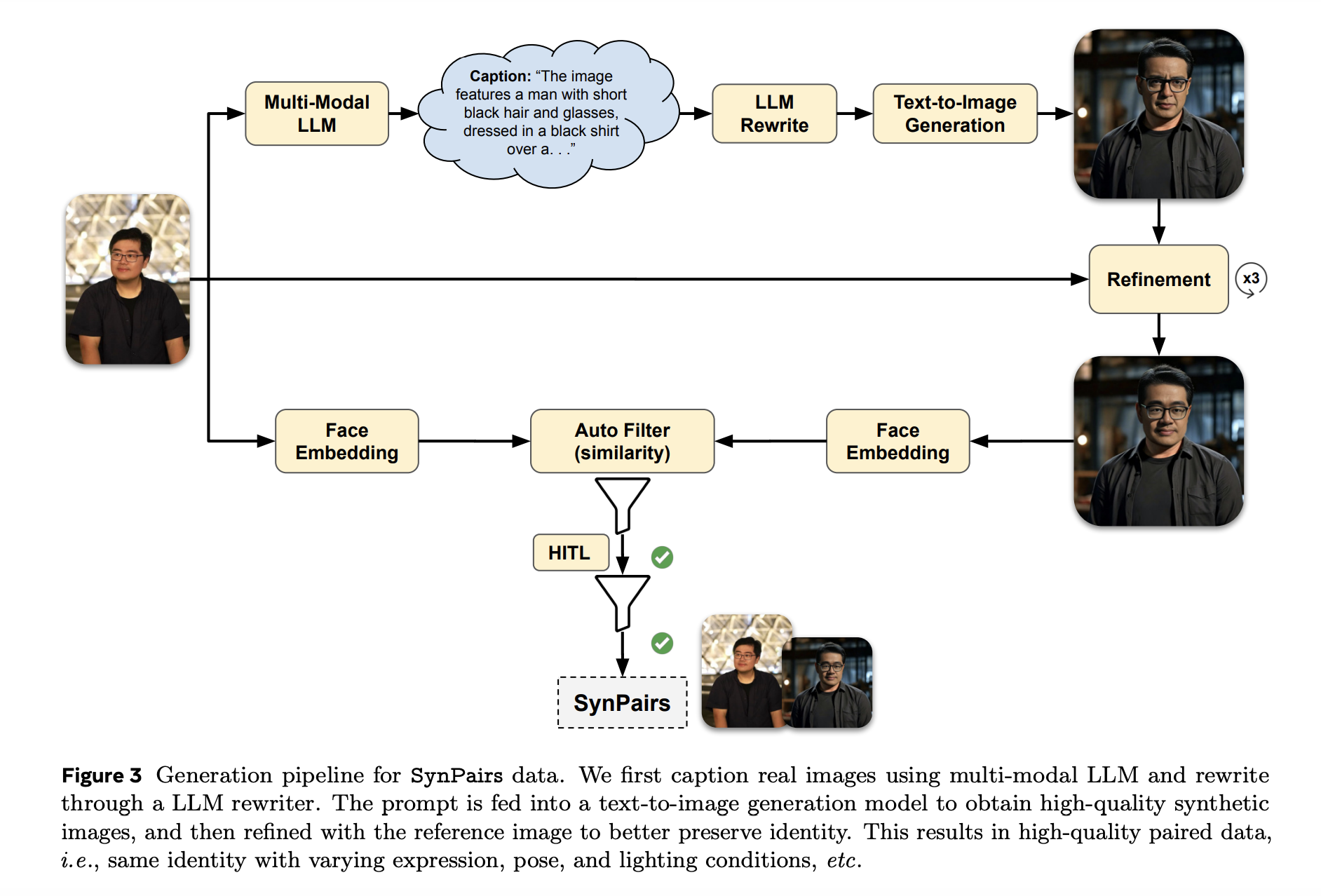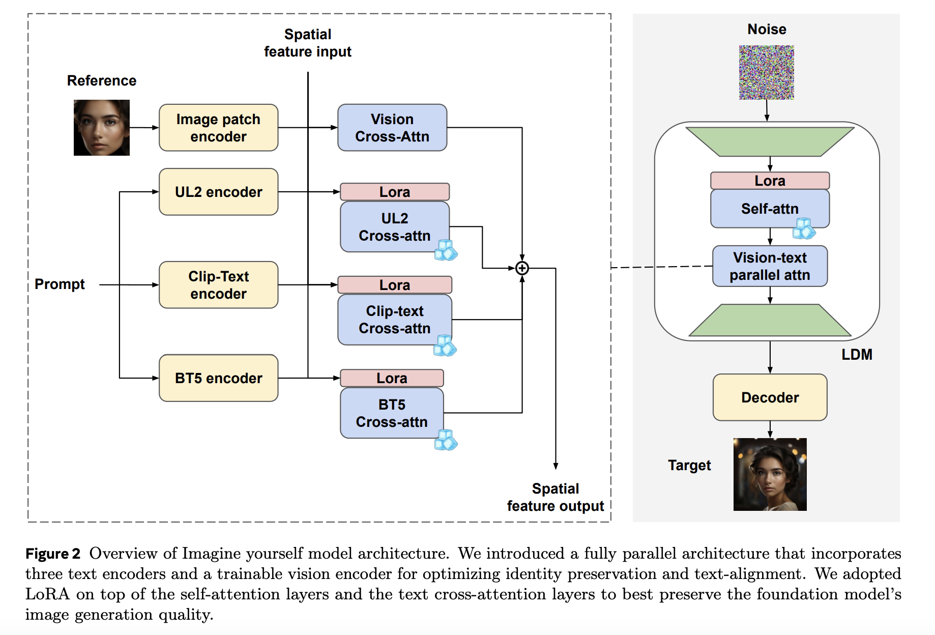 Current personalized image generation methods often rely on tuning models for each user, which is inefficient and lacks generalizability. While newer approaches attempt to personalize without tuning, they often overfit, leading to a copy-paste effect. Meta researchers introduced Imagine Yourself, a novel model that enhances personalization without needing subject-specific tuning. Key components include synthetic paired data generation to encourage diversity, a fully parallel attention architecture integrating three text encoders and a trainable vision encoder, and a coarse-to-fine multi-stage fine-tuning process. These innovations allow the model to generate high-quality, diverse images while maintaining strong identity preservation and text alignment.