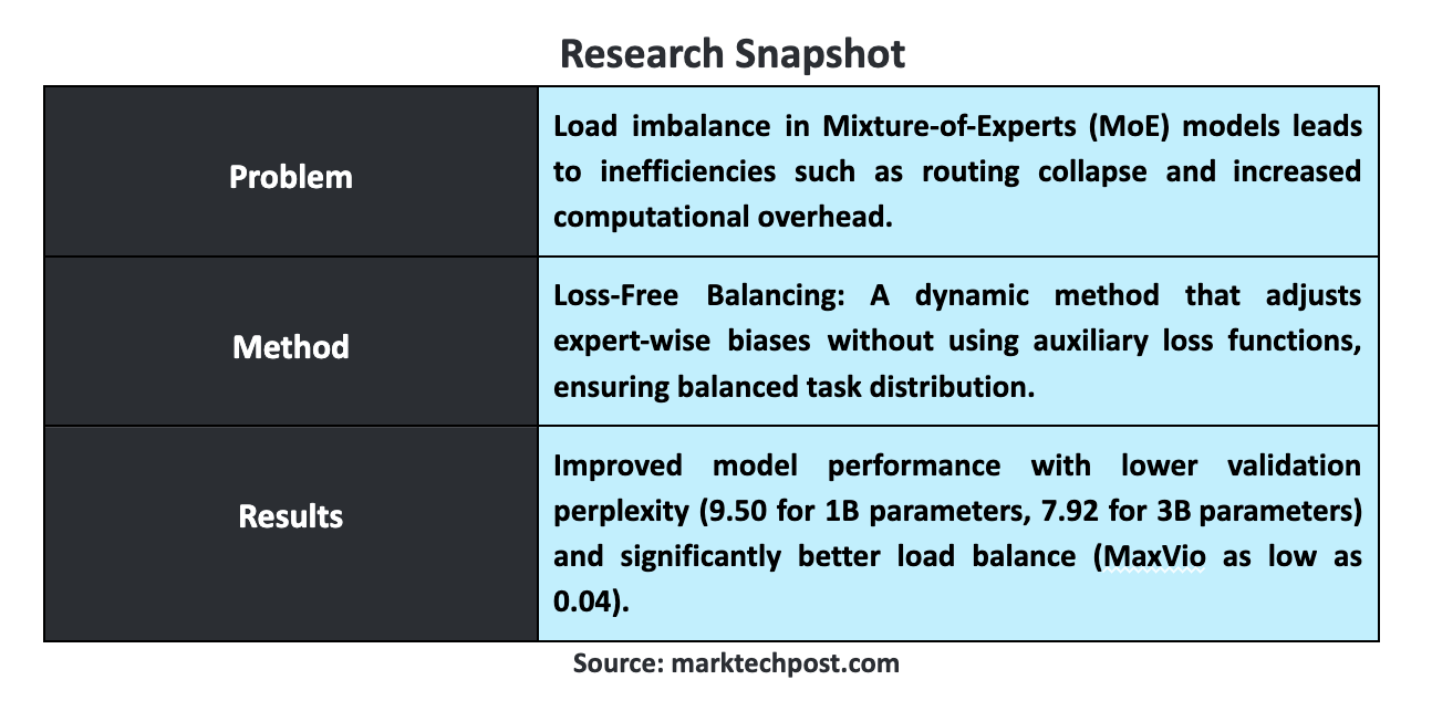 The post Loss-Free Balancing: A Novel Strategy for Achieving Optimal Load Distribution in Mixture-of-Experts Models with 1B-3B Parameters, Enhancing Performance Across 100B-200B Tokens appeared first on MarkTechPost.
