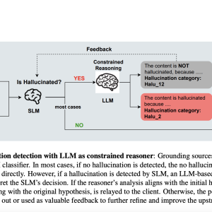 The constrained reasoner, powered by an LLM, then takes over to provide a detailed explanation of the detected hallucination. This component takes advantage of the LLM’s advanced reasoning capabilities to analyze the flagged text in context, offering insights into why it was identified as a hallucination. The reasoner is “constrained” in the sense that it focuses solely on explaining the SLM’s decision, rather than performing an open-ended analysis.