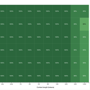 The HashHop evaluation tool measures a model’s ability to recall and reason across multiple hops of hash pairs without relying on semantic hints. The model must complete a sequence of hash pairs, which can be shuffled to ensure order- and position-invariance. The LTM-2-mini model, trained using this method, shows promising results in handling up to 100 million tokens, demonstrating its ability to reason over large contexts far more efficiently than traditional models. Unlike other models like Llama 3.1 405B, which require massive computational resources, LTM-2-mini operates at a fraction of the cost, making it more practical for real-world applications. Although the model shows declining performance with more than two hops without a “chain of thought,” its ability to manage two hops effectively indicates that it can build more complex reasoning circuits than traditional single-step models.