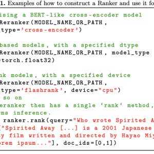 Several current methods exist for re-ranking documents within retrieval pipelines. One of the most popular methods is cross-encoder models, such as BERT, which process queries and documents simultaneously for higher accuracy. These models, although effective, are computationally intensive and require a significant amount of resources. MonoT5, another method, employs sequence-to-sequence models for re-ranking but shares similar computational demands. ColBERT-based methods use late interaction techniques to improve retrieval but require specific hardware optimizations to be effective. Some recent approaches, such as Cohere-Rerank, offer competitive re-ranking capabilities through online APIs, but access to these models remains limited and dependent on external platforms. These existing solutions, while effective, create a fragmented ecosystem where switching between different re-ranking methods often requires substantial code modification.