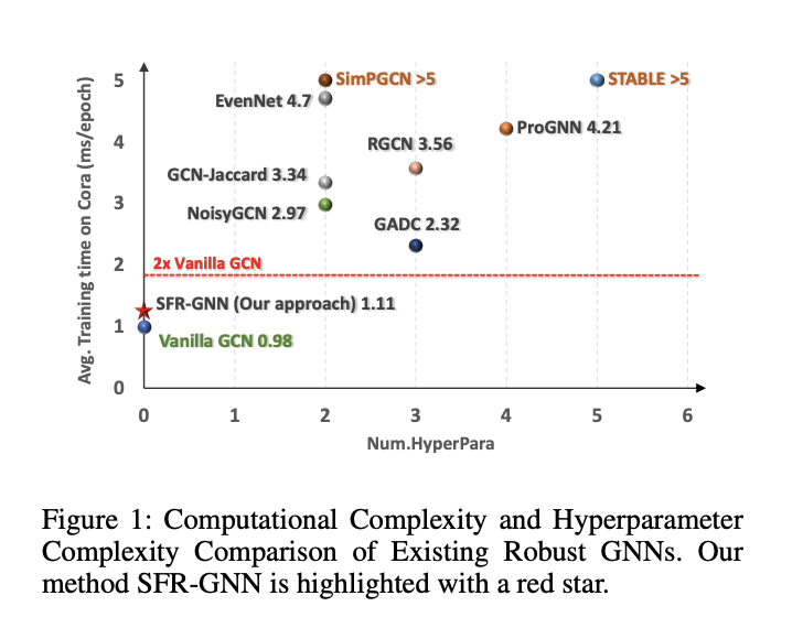 Researchers from The Hong Kong Polytechnic University, The Chinese University of Hong Kong, and Shanghai Jiao Tong University introduce SFR-GNN (Simple and Fast Robust Graph Neural Network), a unique two-step approach to counter structural attacks in graph learning. The method pre-trains on node attributes, then fine-tunes on structural information, disrupting the “paired effect” of attacks. This simple strategy achieves robustness without additional hyper-parameters or complex mechanisms, significantly reducing computational complexity. SFR-GNN’s design makes it nearly as efficient as vanilla GCN while outperforming existing robust models in simplicity and ease of implementation. By pairing manipulated structures with pre-trained embeddings instead of original attributes, SFR-GNN effectively mitigates the impact of structural attacks on model performance.