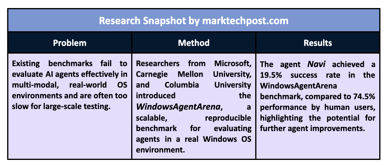 The post Windows Agent Arena (WAA): A Scalable Open-Sourced Windows AI Agent Platform for Testing and Benchmarking Multi-modal, Desktop AI Agent appeared first on MarkTechPost.