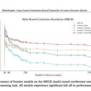The Michelangelo framework comprises three primary tasks: Latent List, Multi-Round Coreference Resolution (MRCR), and the IDK task. The Latent List task involves presenting a sequence of Python operations to the model, requiring it to track changes to a list and determine specific outcomes such as sums, minimums, or lengths after multiple list modifications. This task is designed with increasing complexity, from simple one-step operations to sequences involving up to 20 relevant modifications. MRCR, on the other hand, challenges models to handle complex conversations by reproducing key pieces of information embedded within a long dialogue. The IDK task tests the model’s ability to identify when it does not have enough information to answer a question. Ensuring models do not produce inaccurate results based on incomplete data is crucial.
