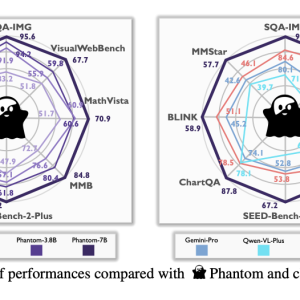 Phantom exhibits strong performance improvements across several benchmarks, outperforming many larger models in tasks involving image understanding, chart interpretation, and mathematical reasoning. For instance, in benchmarks like SQAI and ChartQA, Phantom’s accuracy exceeds that of larger models such as Cambrian-1-13B and SPHINX-MoE-7B×8. These results demonstrate Phantom’s capability to handle complex vision-language tasks efficiently, all while using a smaller model size. This efficiency is largely due to Phantom Dimension and Phantom Optimization, which allow the model to maximize learning without a proportional increase in computational requirements.
