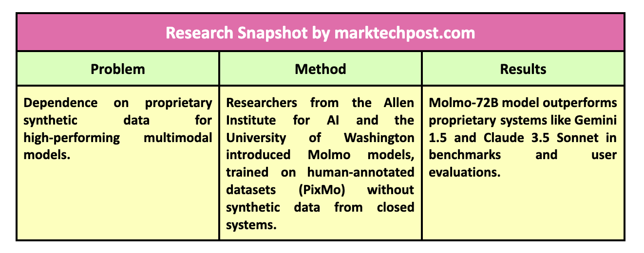 The post Are Small Language Models Really the Future of Language Models? Allen Institute for Artificial Intelligence (Ai2) Releases Molmo: A Family of Open-Source Multimodal Language Models appeared first on MarkTechPost.