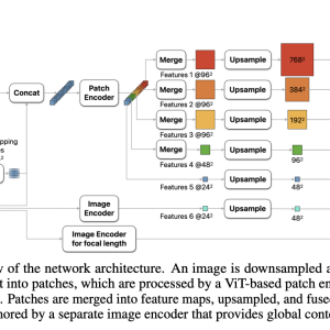 Depth Pro’s architecture is centered around a multi-scale vision transformer (ViT) designed to balance capturing global image context with preserving fine structures. Unlike conventional transformers, Depth Pro applies a plain ViT backbone at multiple scales and fuses predictions into a single high-resolution output, benefiting from ongoing advancements in ViT pretraining. This multi-scale approach ensures sharp boundary delineation even in complex scenarios involving thin structures such as hair and fur, which are typically challenging for monocular depth estimation models.