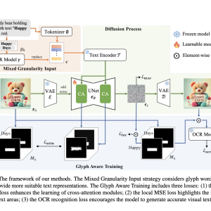 This approach utilizes a latent diffusion framework with three main components: a Variational Autoencoder (VAE) for encoding and decoding images, a UNet denoiser to manage the diffusion process, and a text encoder to handle input prompts. To counter the challenges posed by BPE tokenization, the researchers employed a mixed granularity input strategy, treating words as whole units rather than subwords. An OCR model is also integrated to extract glyph-level features, refining the text embeddings used by the model.