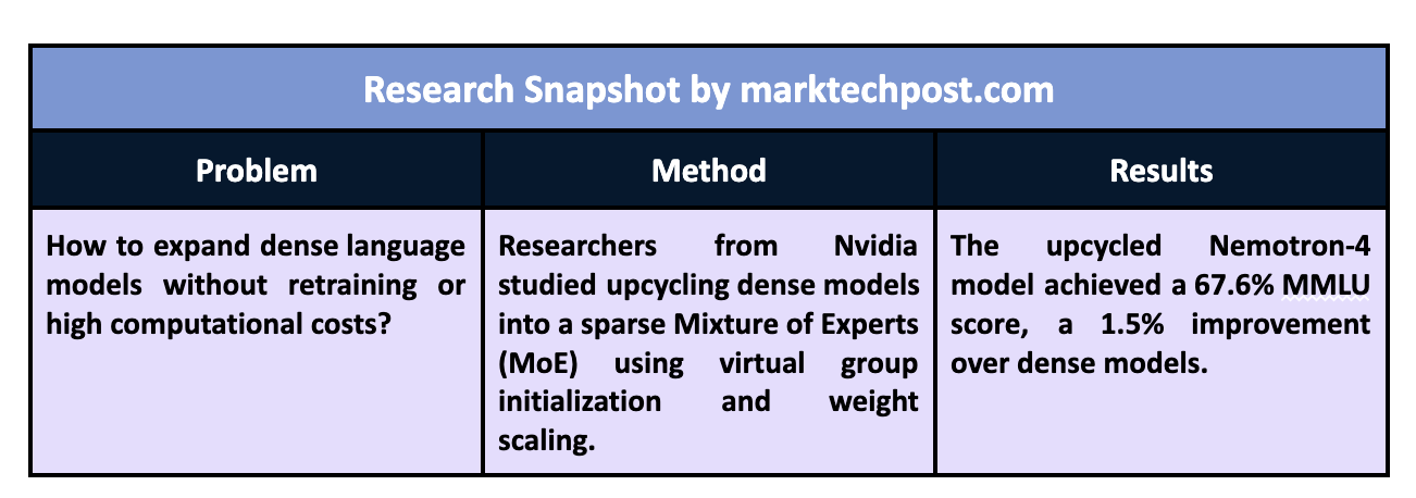 The post NVIDIA AI Researchers Explore Upcycling Large Language Models into Sparse Mixture-of-Experts appeared first on MarkTechPost.