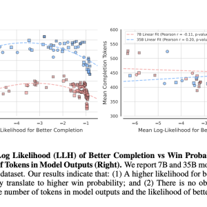The experimental results showed that higher likelihoods of preferred completions do not necessarily improve win probability when compared to models like GPT-3.5 Turbo. For instance, both 7B and 35B models showed weak correlations between completion likelihood and improved win probability, suggesting that an overly high completion likelihood can actually harm model performance. Furthermore, models with a slightly reduced likelihood of preferred completions tended to exhibit greater output diversity, which correlated positively with improved generalization. This improvement was particularly significant during the early stages of training. Importantly, the study outlined how excessive diversity, although beneficial initially, could eventually degrade model performance if the model starts generating overly random outputs.