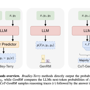 GenRM leverages a large pre-trained LLM to generate reasoning chains that help decision-making. Chain-of-Thought (CoT) reasoning is incorporated into the model’s workflow, where the AI generates step-by-step reasoning before concluding. This self-generated reasoning serves as feedback for the model, which is further refined in iterative cycles. The GenRM model compares favorably against traditional methods like Bradley-Terry reward models and DPO (Direct Preference Optimization), surpassing them in accuracy by 9-31% in in-distribution tasks and 10-45% on out-of-distribution tasks. These iterative refinements reduce the resource load and improve the model’s ability to generalize across tasks.
