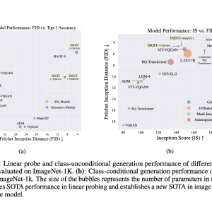 A team of researchers from the School of Data Science and the School of Computer Science and Technology at the University of Science and Technology of China, as well as the State Key Laboratory of Cognitive Intelligence and Zhejiang University propose Discriminative Generative Image Transformer (DiGIT). This method separates the training of encoders and decoders, beginning with encoder, training through a discriminative self-supervised model. This strategy enhances the stability of the latent space, making it more robust for autoregressive modeling. They utilize a method inspired by VQGAN to convert the encoder’s latent feature space into discrete tokens using K-means clustering. The research suggests that image autoregressive models can operate similarly to GPT models in natural language processing. The main contributions of this work include a unified perspective on the relationship between latent space and generative models, emphasizing the importance of stable latent spaces; a novel method that separates the training of encoders and decoders to stabilize the latent space; and an effective discrete image tokenizer that enhances the performance of image autoregressive models.