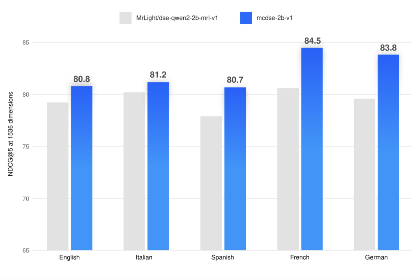 Early results have shown that mcdse-2b-v1 consistently delivers high retrieval accuracy, even when compressed to one-sixth of its original size. This level of performance makes it practical for large-scale deployments without the typical computational expense. Additionally, its multilingual capability means it can serve a wide range of users globally, making it valuable in multinational organizations or academic settings where multiple languages are in use.