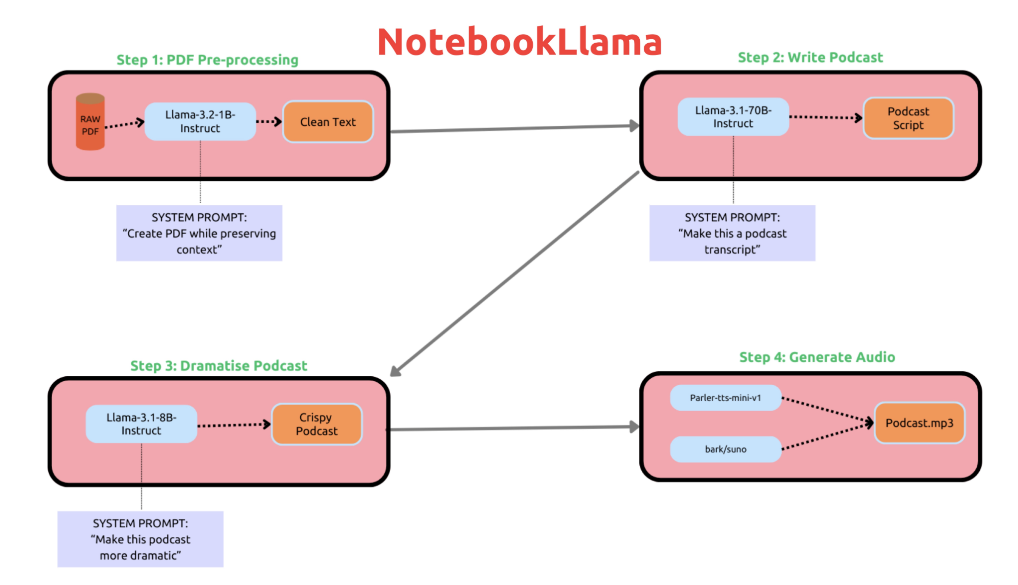 NotebookLlama is powered by a highly optimized version of Meta’s Llama language models, tailored for interactive document and code generation. The model employs parameter-efficient fine-tuning, enabling developers to create personalized models suited to their specific project needs. Meta has also provided the foundational model and a set of recipes for deploying NotebookLlama across various environments, whether on local servers or cloud infrastructure, significantly lowering entry barriers for smaller institutions and individual users. NotebookLlama supports multi-turn conversations, allowing for in-depth interaction between the user and the AI—ideal for debugging, code optimization, and comprehensive explanations of both code and complex concepts.