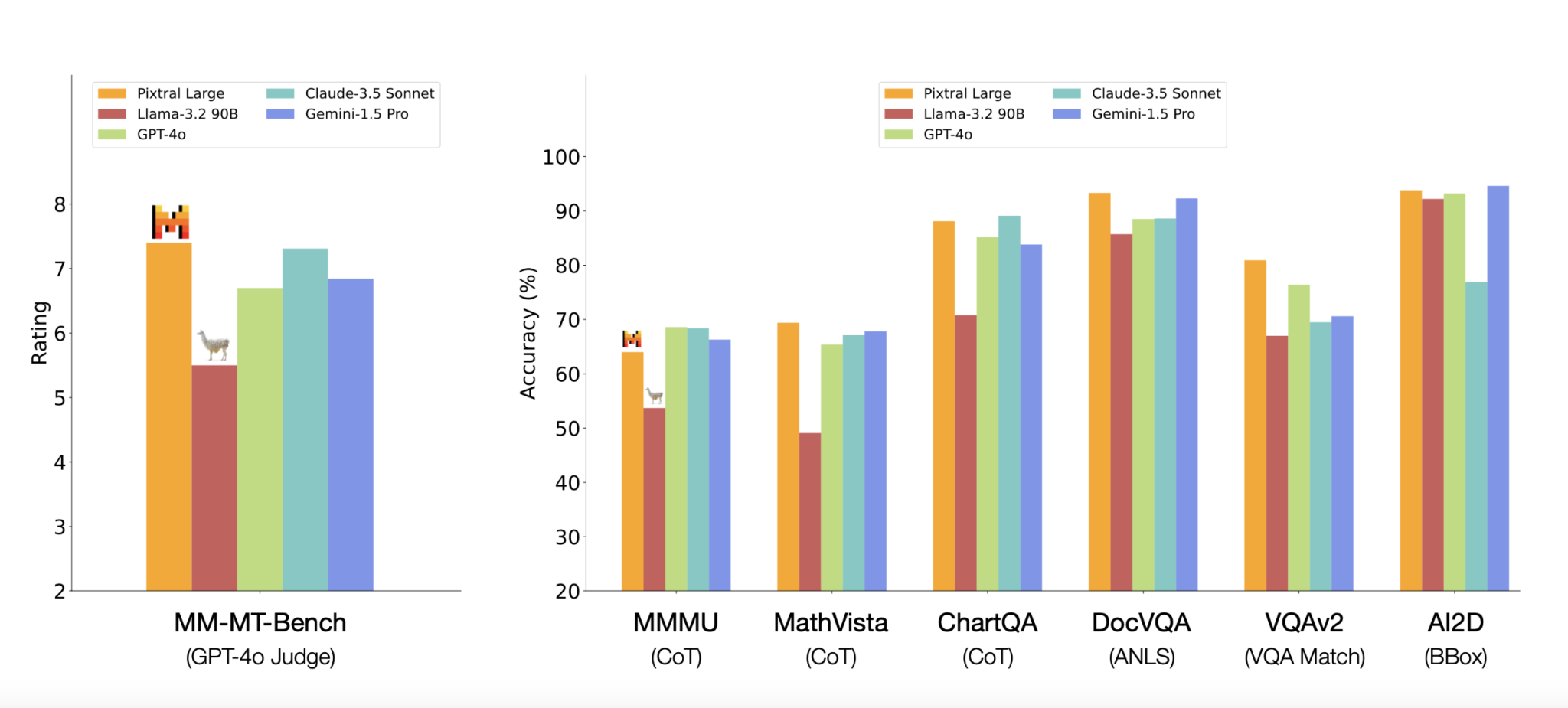 Technically, Pixtral Large leverages the transformer backbone of Mistral Large 2, adapting it for multimodal integration by introducing specialized cross-attention layers designed to fuse information across different modalities. With 124 billion parameters, the model is fine-tuned on a diverse dataset comprising text, images, and multimedia annotations. One of the key strengths of Pixtral Large is its modular architecture, which allows it to specialize in different modalities while maintaining a general understanding. This flexibility enables high-quality multimodal outputs—whether it involves answering questions about images, generating descriptions, or providing insights from both text and visual data. Furthermore, the open-weights model allows researchers to fine-tune Pixtral for specific tasks, offering opportunities to tailor the model for specialized needs.