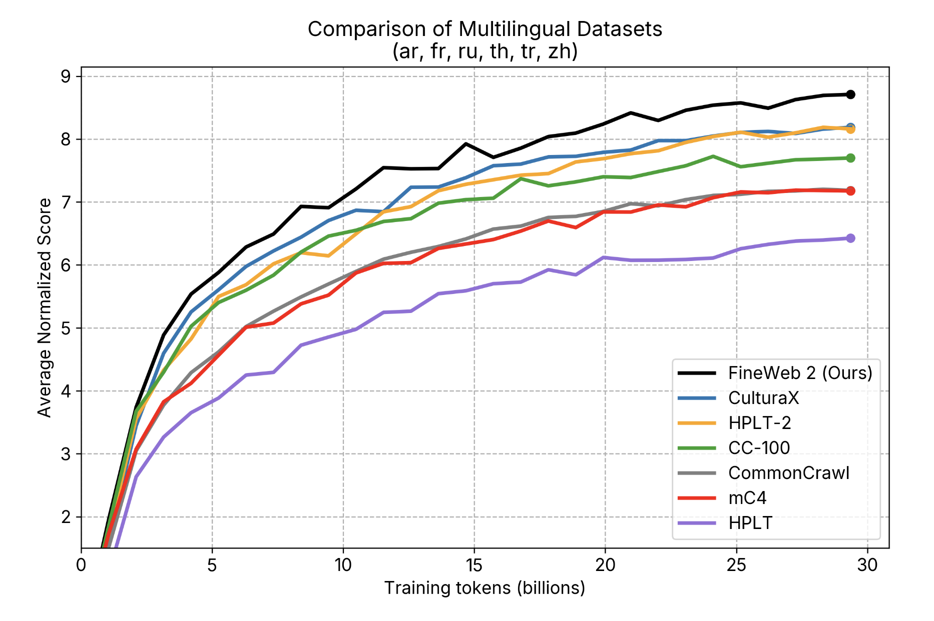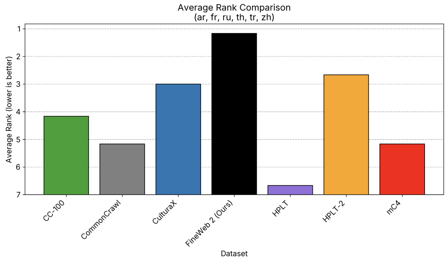What sets FineWeb2 apart is its consistent performance across multilingual tasks. It surpasses other popular datasets like CC-100, mC4, CulturaX, and HPLT, and in some cases, even outperforms datasets specifically curated for individual languages. These results underscore FineWeb 2’s potential as a one-stop solution for multilingual model pretraining.