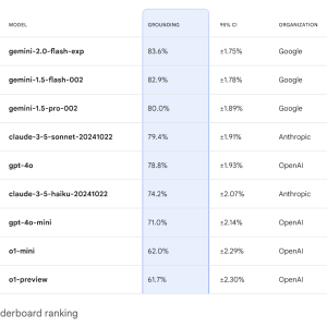 The FACTS Grounding Leaderboard revealed diverse performance results across tested models, showcasing the benchmark’s rigor in evaluating factuality. Among the models evaluated, Gemini 1.5 Flash achieved an impressive factuality score of 85.8% in the public dataset, while Gemini 1.5 Pro and GPT-4o followed closely with scores of 84.9% and 83.6%, respectively. On the private dataset, Gemini 1.5 Pro outperformed others with a score of 90.7%. The disqualification of ineligible responses reduced scores by 1% to 5%, emphasizing the importance of robust filtering mechanisms. These results highlight the benchmark’s ability to differentiate performance and promote transparency in model evaluation.