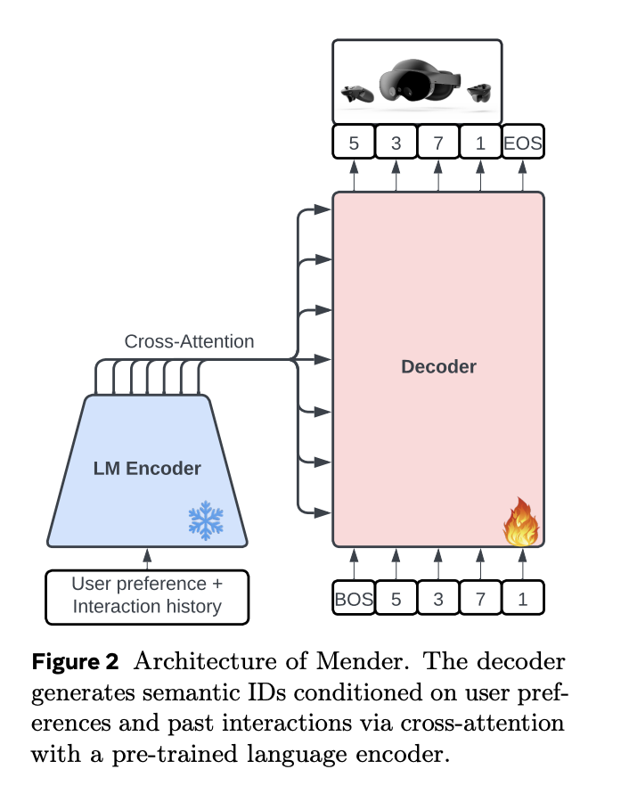 Mender’s design focuses on integrating user preferences with interaction data seamlessly. It uses pre-trained language models to encode preferences and interaction histories in natural language. Its cross-attention mechanisms enable the decoder to predict semantic IDs for recommended items. Mender comes in two variants: