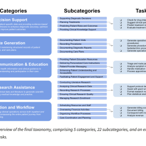 • A structured taxonomy of 121 real-world medical tasks, improving the scope of AI evaluation in clinical settings.