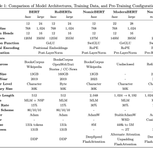 Encoder models like BERT and RoBERTa have long been cornerstones of natural language processing (NLP), powering tasks such as text classification, retrieval, and toxicity detection. However, while decoder-based large language models (LLMs) like GPT and LLaMA have evolved rapidly—incorporating architectural innovations, larger datasets, and extended context windows—encoders have stagnated. Despite their critical role in embedding-dependent applications, BERT-family models rely on outdated architectures, limited training data, and short context lengths, leading to suboptimal performance on modern benchmarks. In this paper, the researchers have presented NeoBERT to revitalize encoder design by integrating advancements from decoder models while addressing inherent limitations of existing encoders.