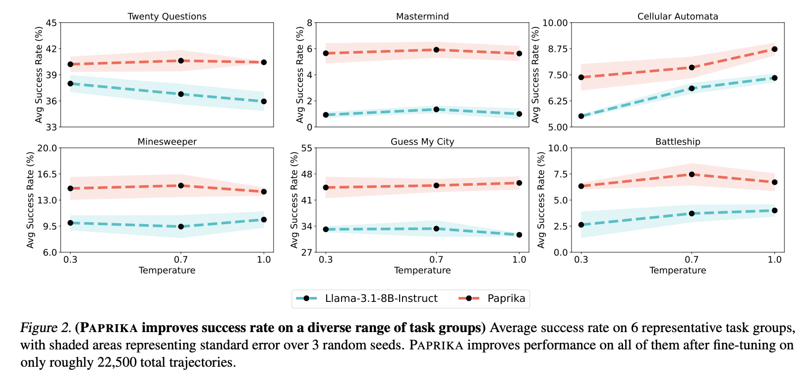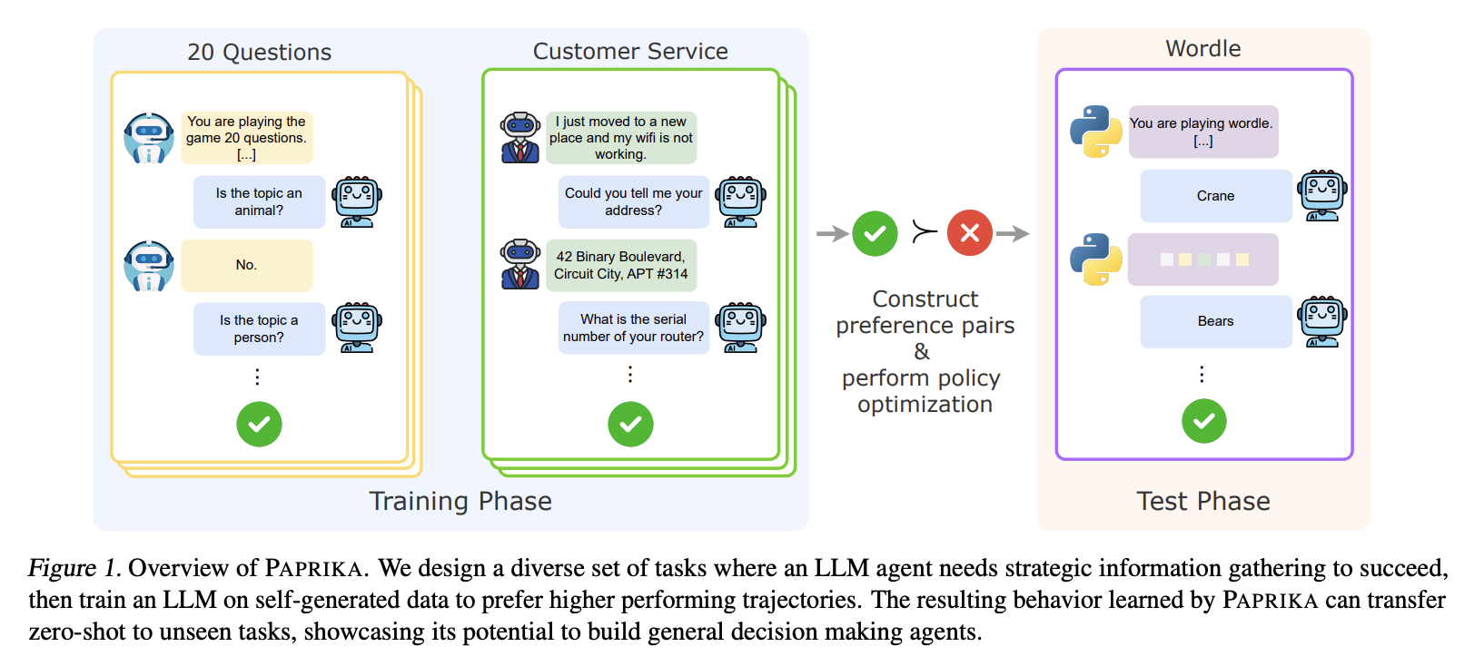 The capability to interact with external environments, collect pertinent information, and adjust decisions based on feedback is essential for any system designed to operate autonomously. While there remain challenges—such as ensuring a solid starting model and managing the computational costs of synthetic data generation—PAPRIKA offers a promising avenue toward developing more versatile AI systems. Ultimately, as our models continue to advance, approaches like PAPRIKA will be important for creating tools that are not only proficient in language understanding but also capable of navigating complex, real-world decision-making tasks with subtlety and care.