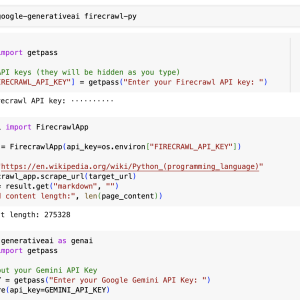 First, we install google-generativeai firecrawl-py, which installs two essential libraries required for this tutorial. google-generativeai provides access to Google’s Gemini API for AI-powered text generation, while firecrawl-py enables web scraping by fetching content from web pages in a structured format.