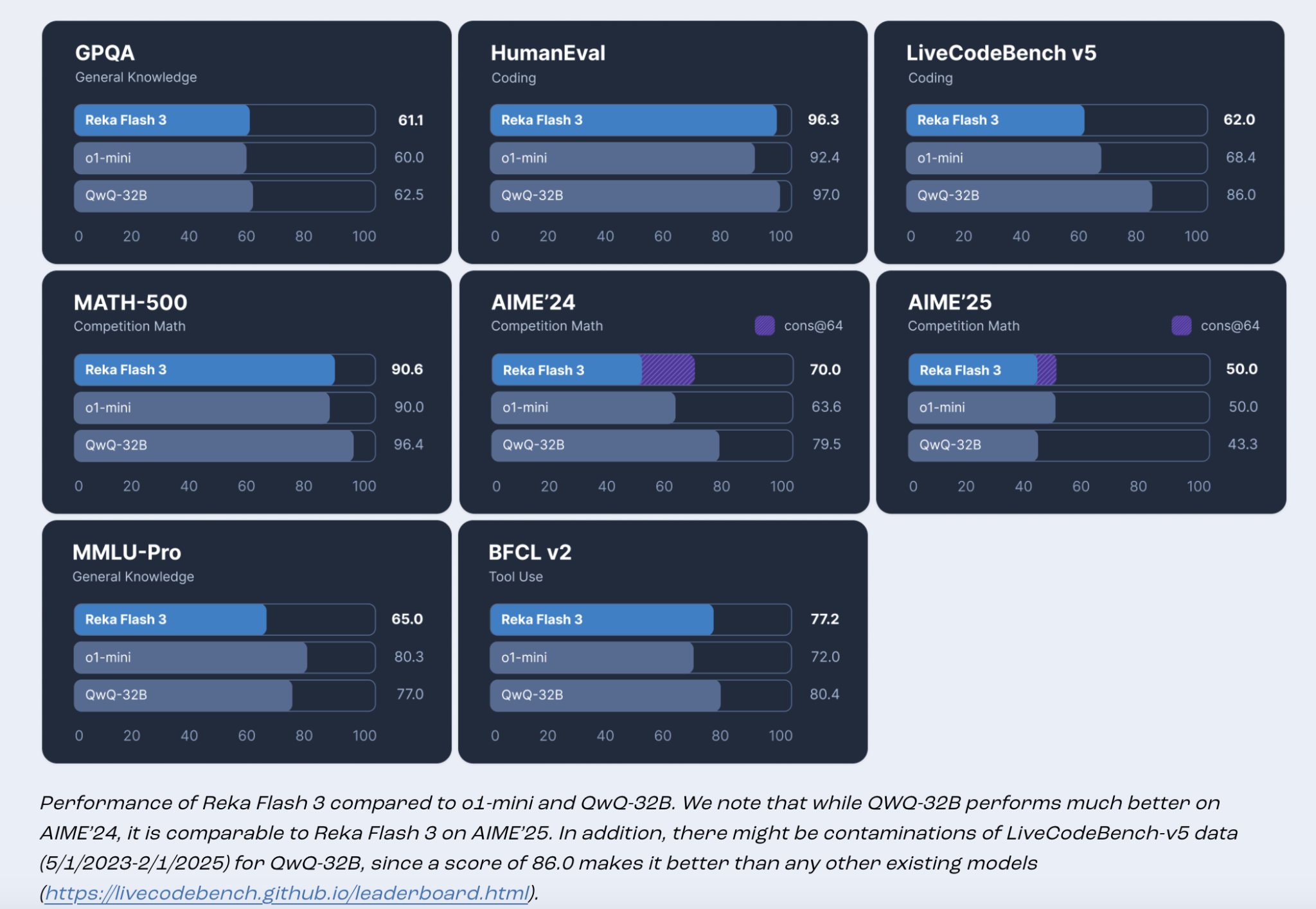 Evaluation metrics and performance data reinforce the model’s practicality. For example, while Reka Flash 3 shows a modest MMLU-Pro score of 65.0, it remains competitive when paired with supplementary knowledge sources like web search. Additionally, its multilingual capabilities are reflected in an 83.2 COMET score on WMT’23, indicating a reasonable level of support for non-English inputs despite its primary focus on English. These results, combined with its efficient parameter count relative to peers such as QwQ-32B, highlight its potential for a range of real-world applications without resorting to overblown claims .
